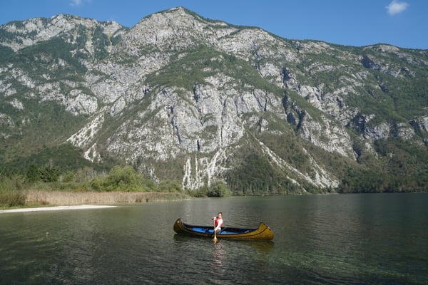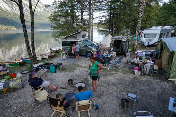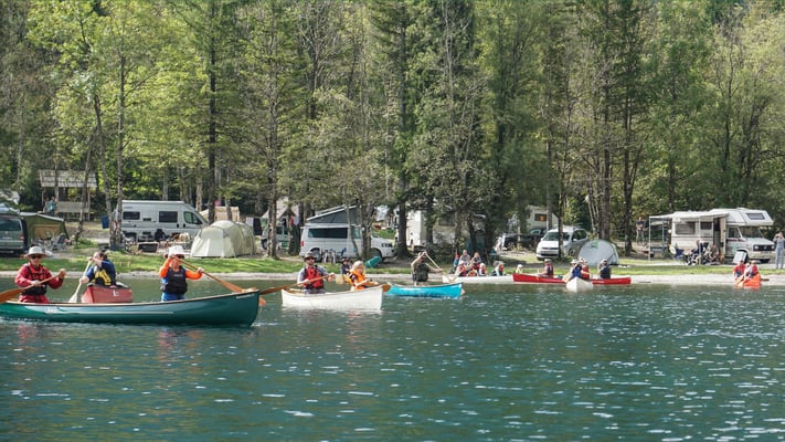 Unsere Anreise zum Camp Zlatorog am Westufer erfolgte schon am Mittwoch bei strahlendem Sonnenschein. Reservierungen werden hier grundsätzlich nicht angenommen und man kann sich den Stellplatz selbst aussuchen. Die Plätze am Wasser sind natürlich die begehrtesten. Wir hatten Glück, genau einer war noch frei und zwar genau neben einer jungen Dame aus Deutschland mit Kanu. Wie passend! Paddler unter sich kommen natürlich sofort ins Gespräch. Ihr Name ist Nessi und sie hatte eigentlich vor, am nächsten Tag abzureisen, aber wir haben sie eingeladen, an unserem Treffen teilzunehmen.