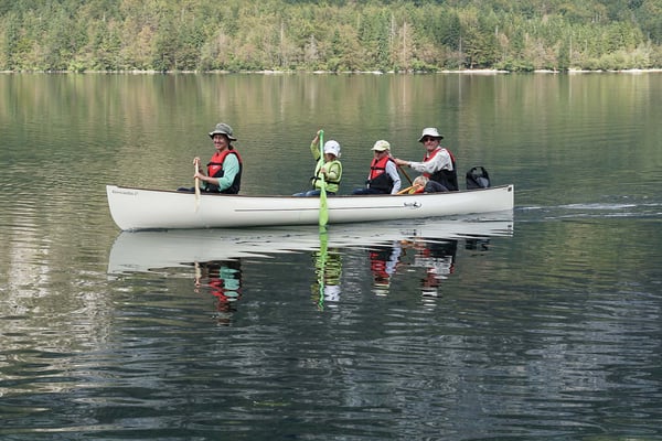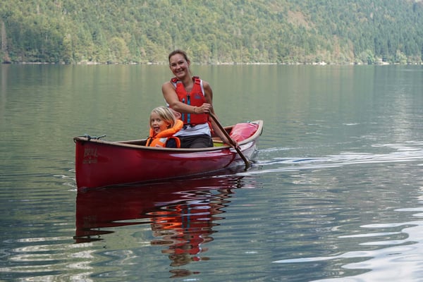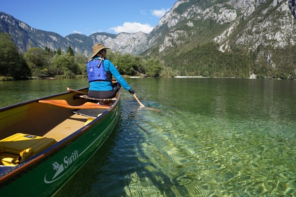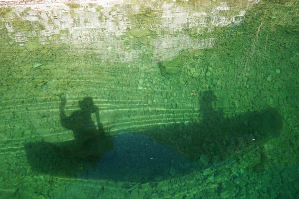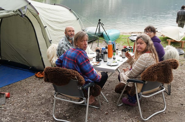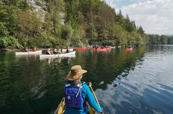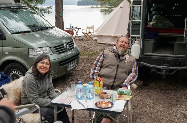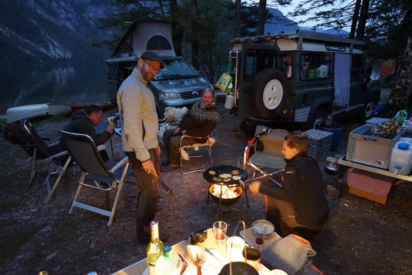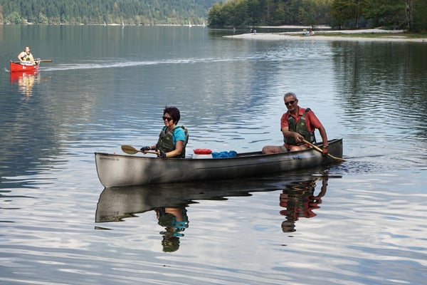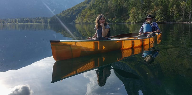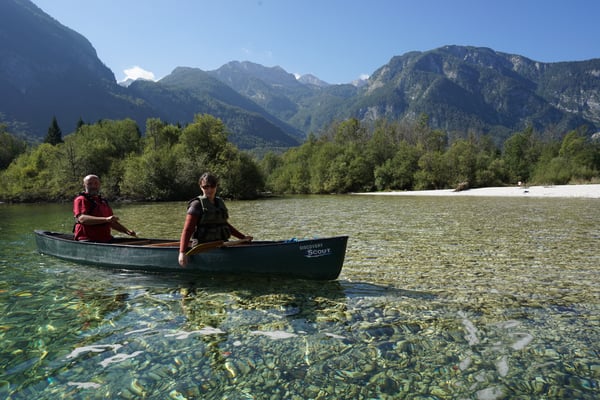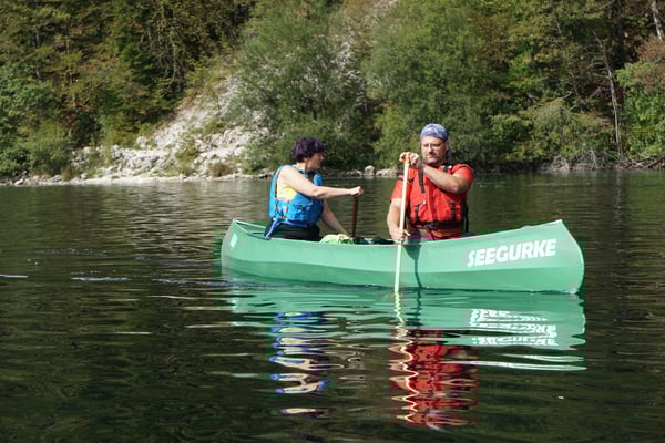 Am Donnerstag wurden einige Plätze rund um uns frei und wir okkupierten sie mit allen uns zur Verfügung stehenden Mitteln: Holzkisten, Kanus, Muurika, Potjie King… Am frühen Nachmittag gesellten sich Katrin und Knud zu uns. Nach einer freudigen Begrüßung ging es aufs Wasser. Die Begeisterung stieg mit jedem Paddelschlag. Die Einmündung der Savica und das naturbelassene Ufer wurden erkundet. Das kristallklare Wasser gibt den Blick bis auf den tiefen Grund frei.