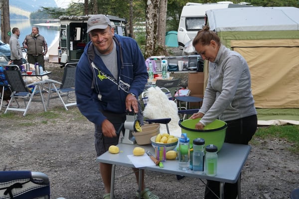 Anmerkung: Wir hatten in der Ankündigung vergessen mitzuteilen, dass es in der Nähe des Campingplatzes kein Lebensmittelgeschäft gibt. Sorry… aber bei der Menge Kartoffeln ;-)