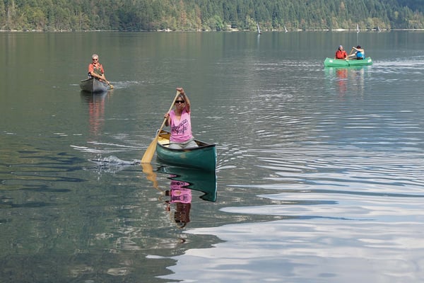 Am Samstag, nachdem der Nebel weggezogen war, unternahmen wir eine Seeumrundung. Über 20 Boote waren unterwegs. Fritz konnte dabei gleich seinen nagelneuen Keewaydin testen.