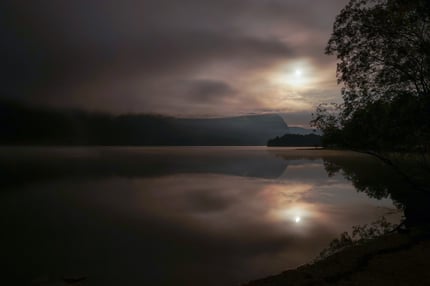 Unser Lager füllte sich nach und nach. Zurück am Ufer begrüßten uns schon Birgit und Joe, die die weite Anreise aus Tirol nicht gescheut haben. Auch Markus kam nicht lange nach ihnen mit seinem Junior. Vor Mitternacht folgten noch Woif und Eva. Es kostete uns natürlich keine Mühe so lange aufzubleiben. Der klare Himmel über uns war sehr einladend für intensives Sternegucken. Es wurden Sternbilder gesucht und gefunden, Galaxien, Nebel und Doppelsterne mit dem Fernglas beobachtet. Nachdem der Mond aufging, fiel der Nebel ein.