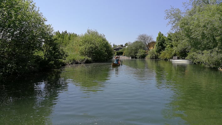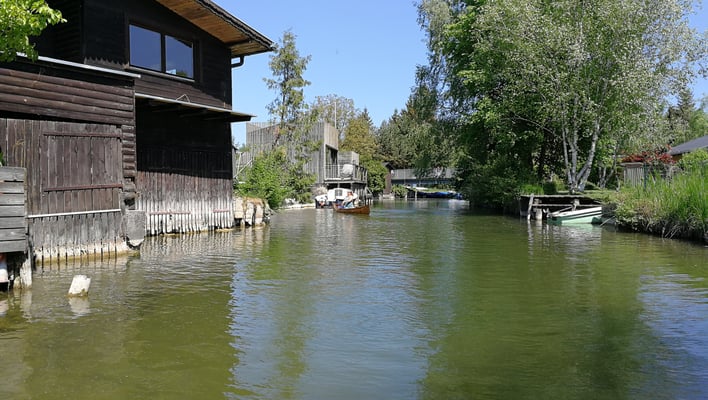 Die Fischach ist der Abfluss vom Wallersee und ist in beide Richtungen paddelbar.