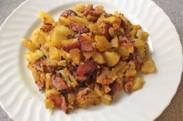 Salsiccia (pikante italienische Wurst) in Scheiben schneiden (die Menge variiert je nach Gusto) und auf der Grillpfanne oder in einer normalen Pfanne anbraten. In Scheiben geschnittene und vorgekochte Erdäpfel dazu geben und mitrösten. Nach Wunsch würzen und zu guter Letzt mit Senf (Weißwurstsenf „natürlich“) verspeisen .